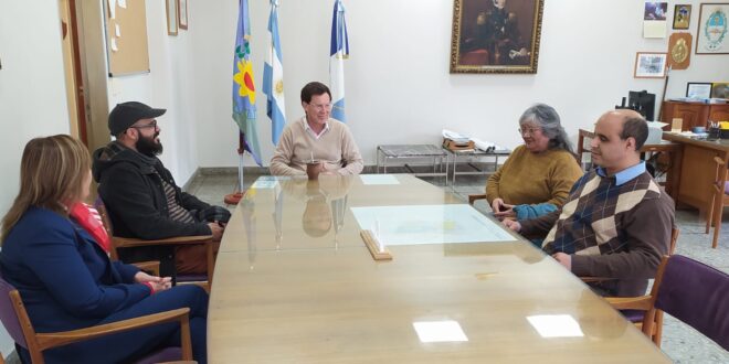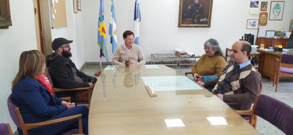 En la mañana de este lunes el intendente Juan Chalde junto a la secretaria de Gobierno y Hacienda, Laura Dumrauf y al director de Cultura Cristian De Marco, recibieron en la comuna a Susana Dakuyaku, quien custodia los derechos del autor dorreguense Roberto Juárroz. La visita se produjo en el marco de la Semana Vertical, tal el nombre a todas las acciones que en celebración del nacimiento de Juárroz se vienen realizando desde la semana pasada y cuyo punto más destacado fue la imposición de su nombre a la Sala de Exposiciones de la Casa de la Cultura en la tardenoche de este domingo 5, coincidente con el día del cumpleaños del reconocido escritor nacido en Coronel Dorrego y que tuvo proyección internacional a través de su Poesía Vertical. Estuvo presente también Diego Roel, escritor, vinculado a la Poesía Vertical