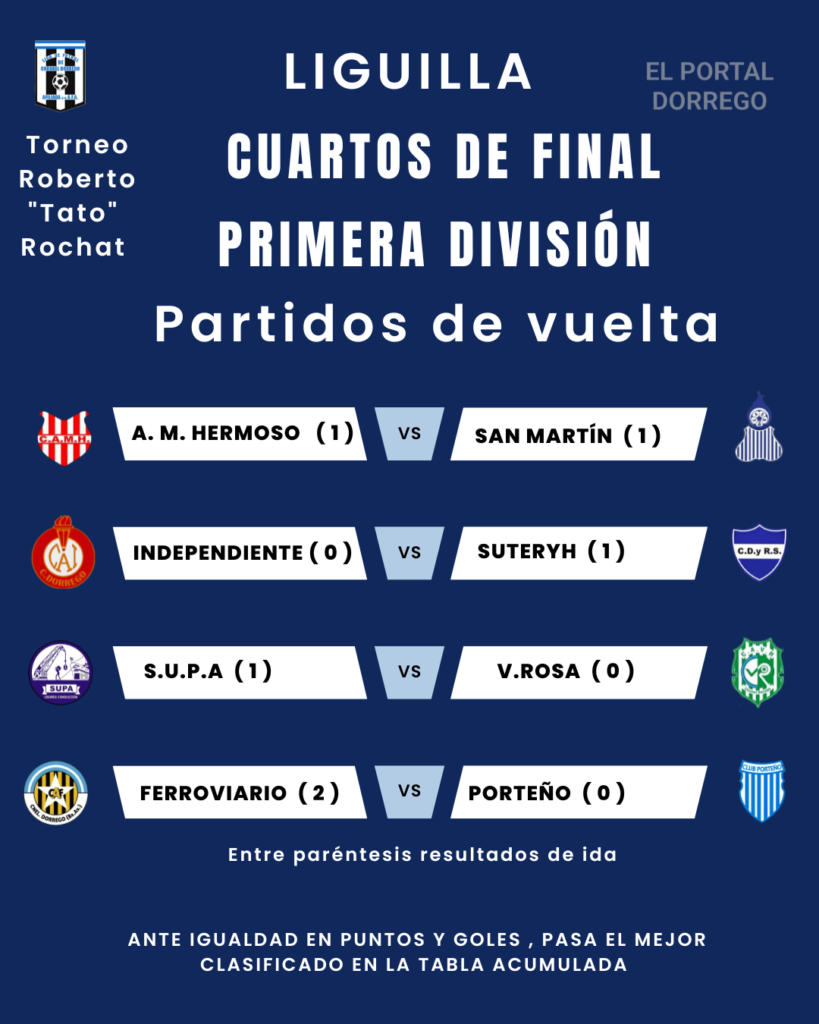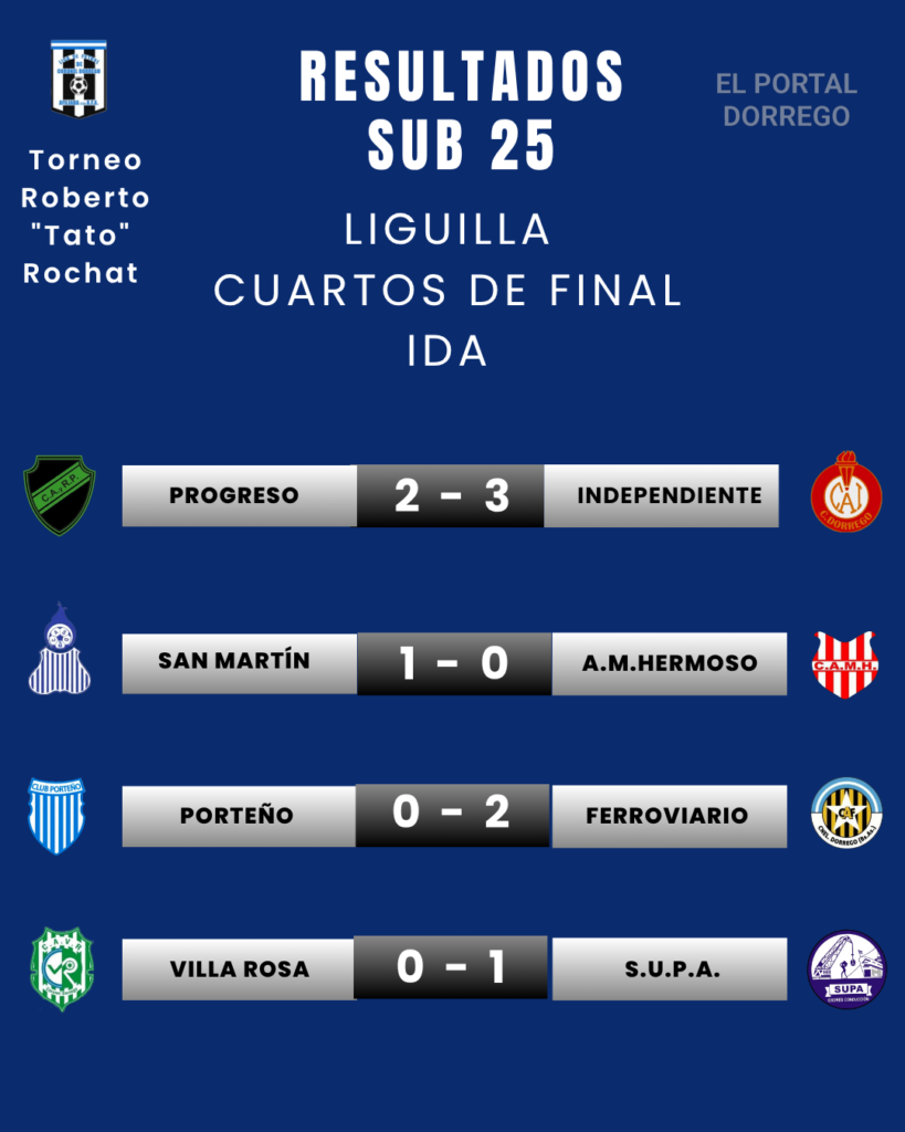 Se jugaron los partidos de ida por los cuartos de final de la liguilla del torneo Roberto «Tato» Rochat, que organiza la Liga de fútbol de C.Dorrego