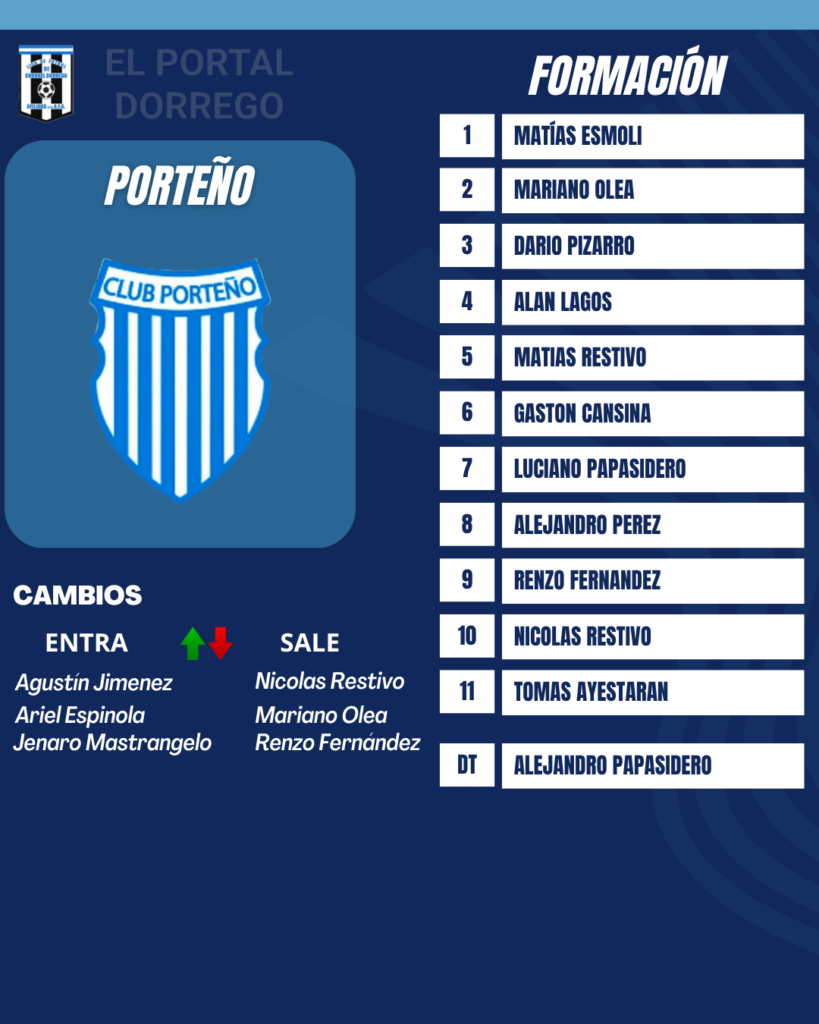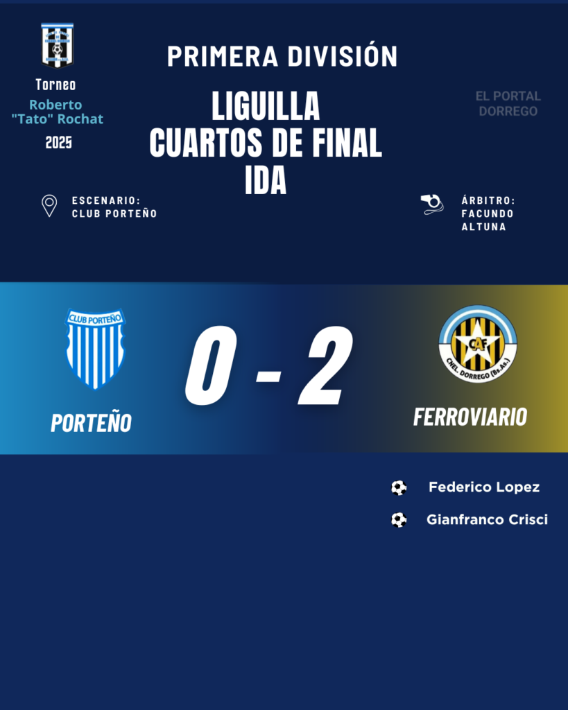 | Porteño : ( 0 ) Ferroviario : ( 2 ) : Lautaro Larsen – Leandro Larrosa |