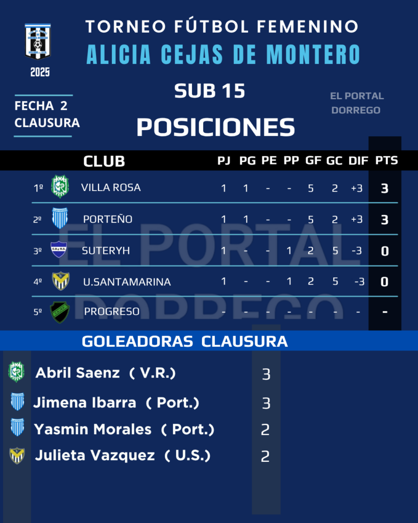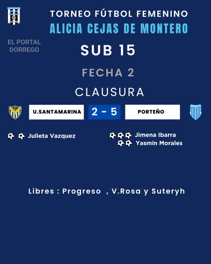 Se jugó la fecha 2 del clausura , del torneo sub 15 de fútbol Femenino » Alicia Cejas de Montero » que organiza la Liga de fútbol de C.Dorrego