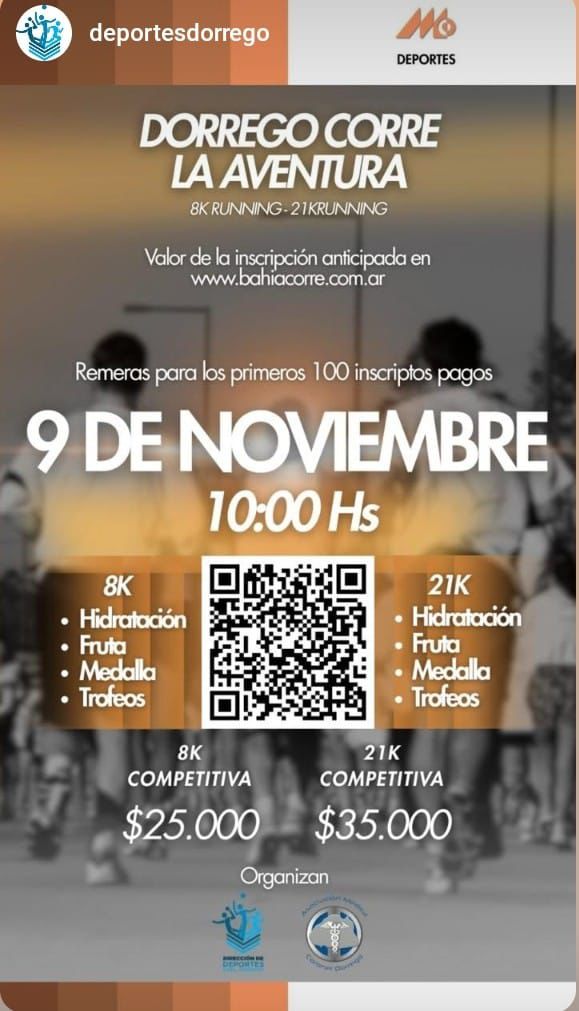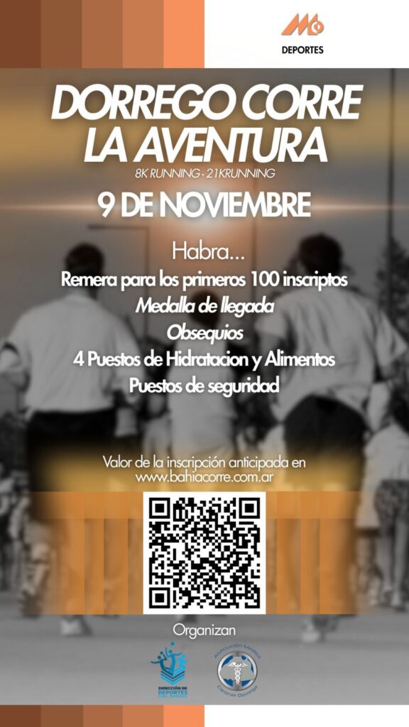 Cuenta regresiva para Dorrego Corre La Aventura a realizarse el 9 de Noviembre a partir de las 10hs desde la Plaza Central.