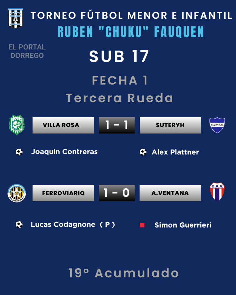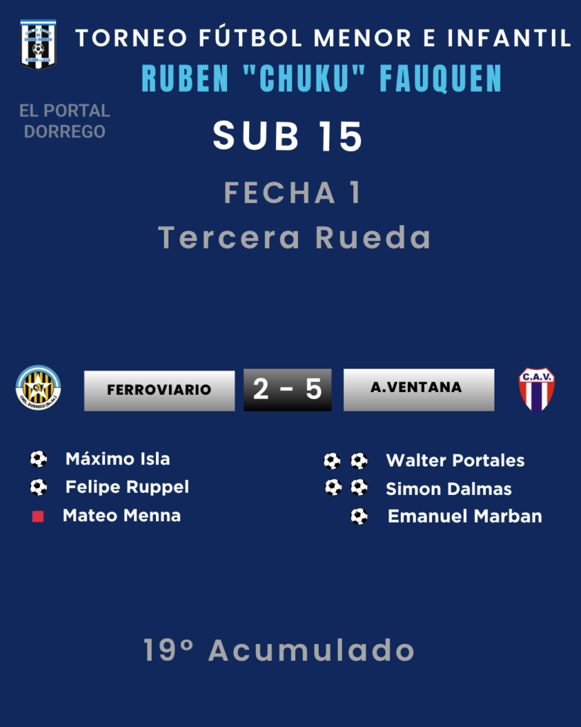Se completó la fecha 1 de la tercera rueda y 19 del Acumulado del torneo de fútbol menor e infantil Ruben «Chuku’ Fauquen