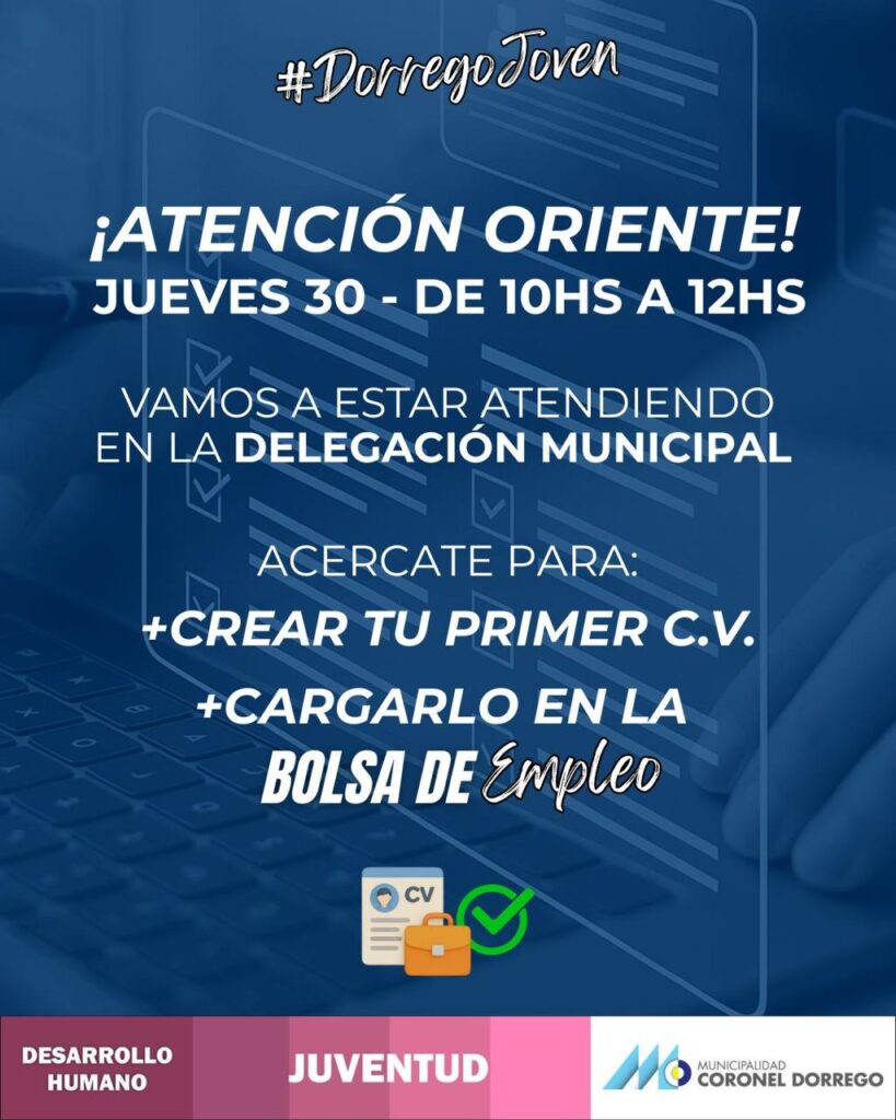 En tanto desde el Área de Juventud inscribirán en la Bolsa de Empleo Jóven y ayudarán en la confección de Curriculum Vitae.