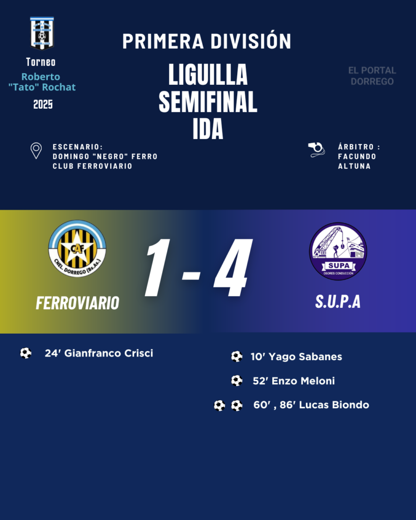 Se jugaron los partidos de ida por las semifinales de la liguilla del torneo Roberto «Tato» Rochat, que organiza la Liga de fútbol de C.Dorrego