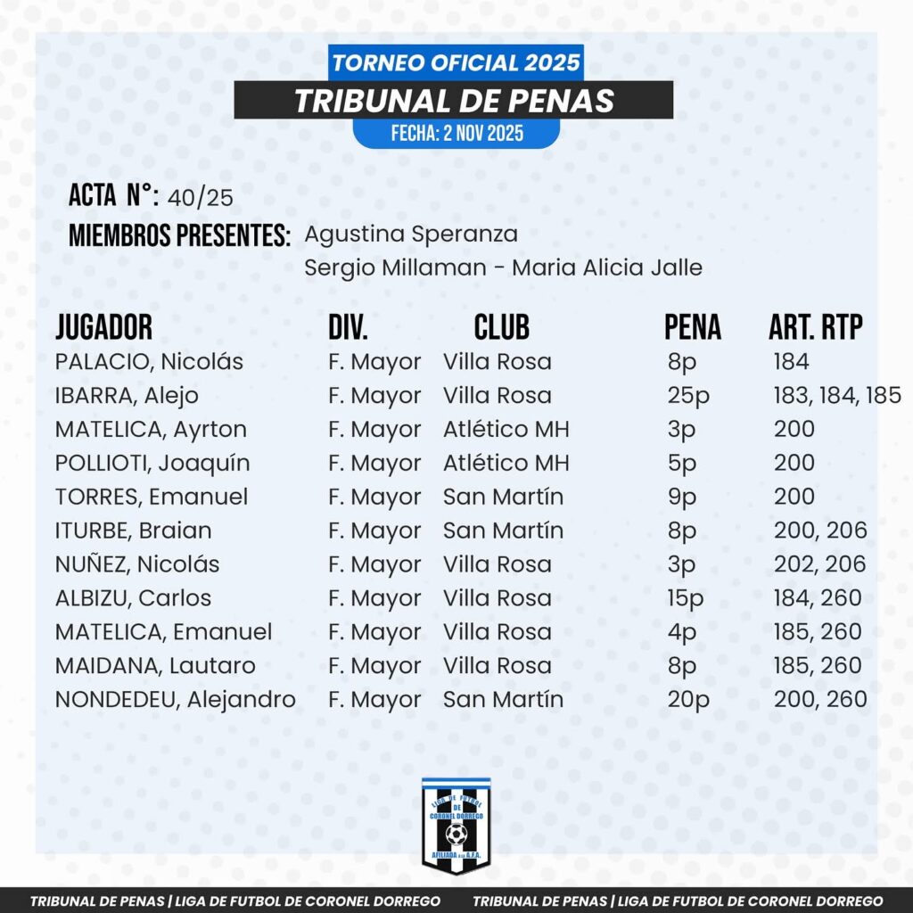 Fútbol Mayor Fallos de los partidos disputados el 2 de noviembre Info : facebook Liga de fútbol Coronel Dorrego