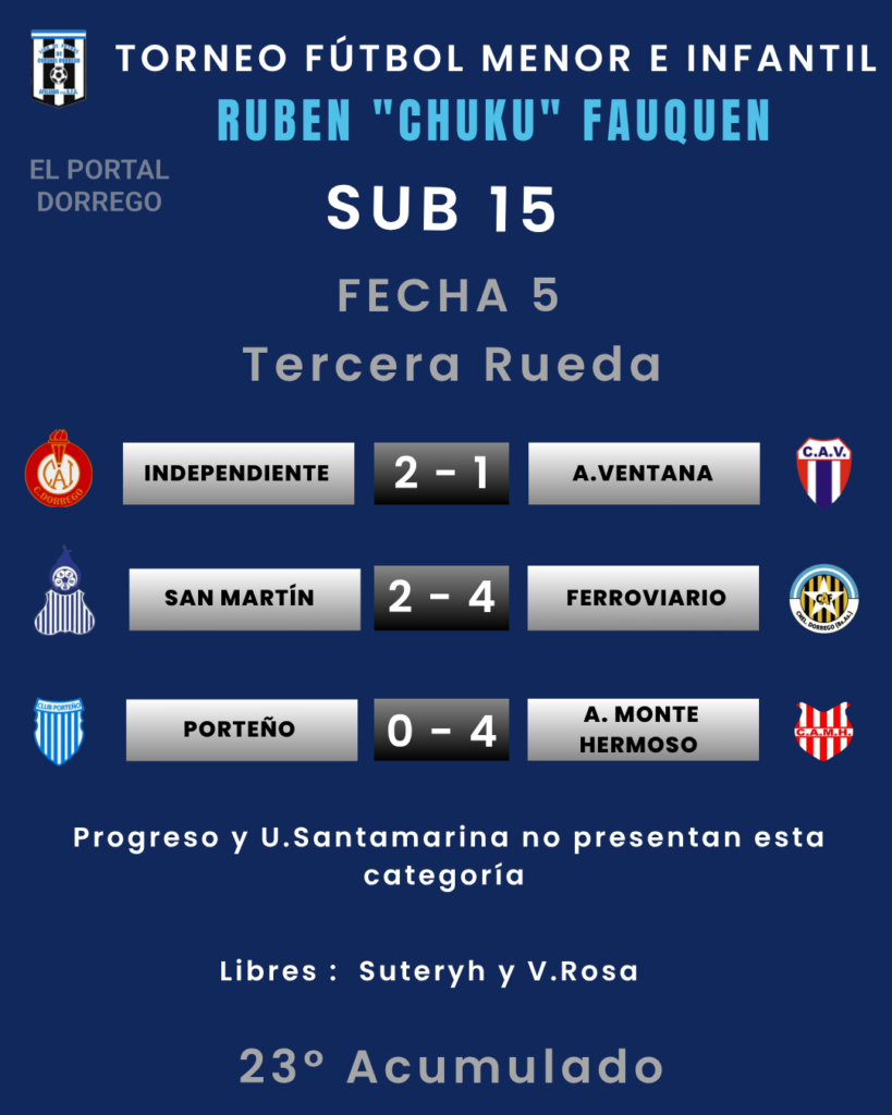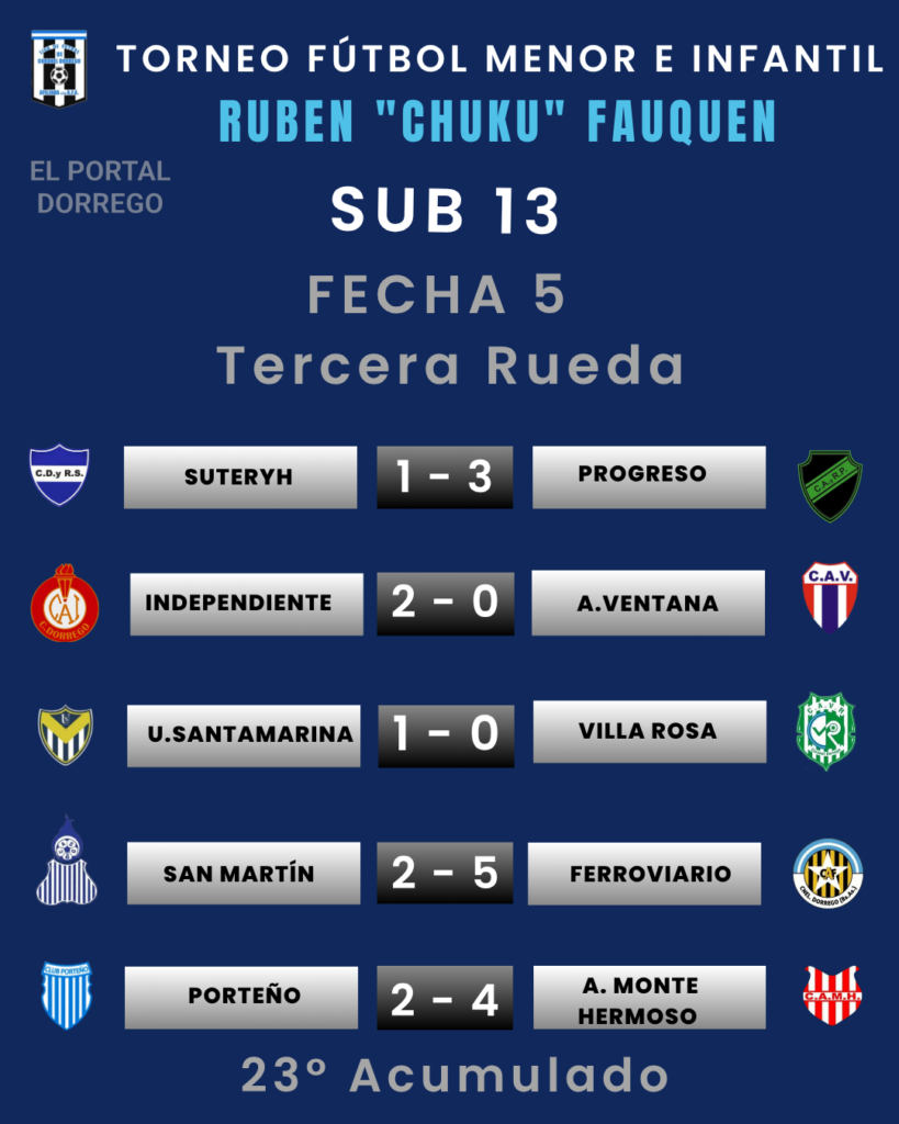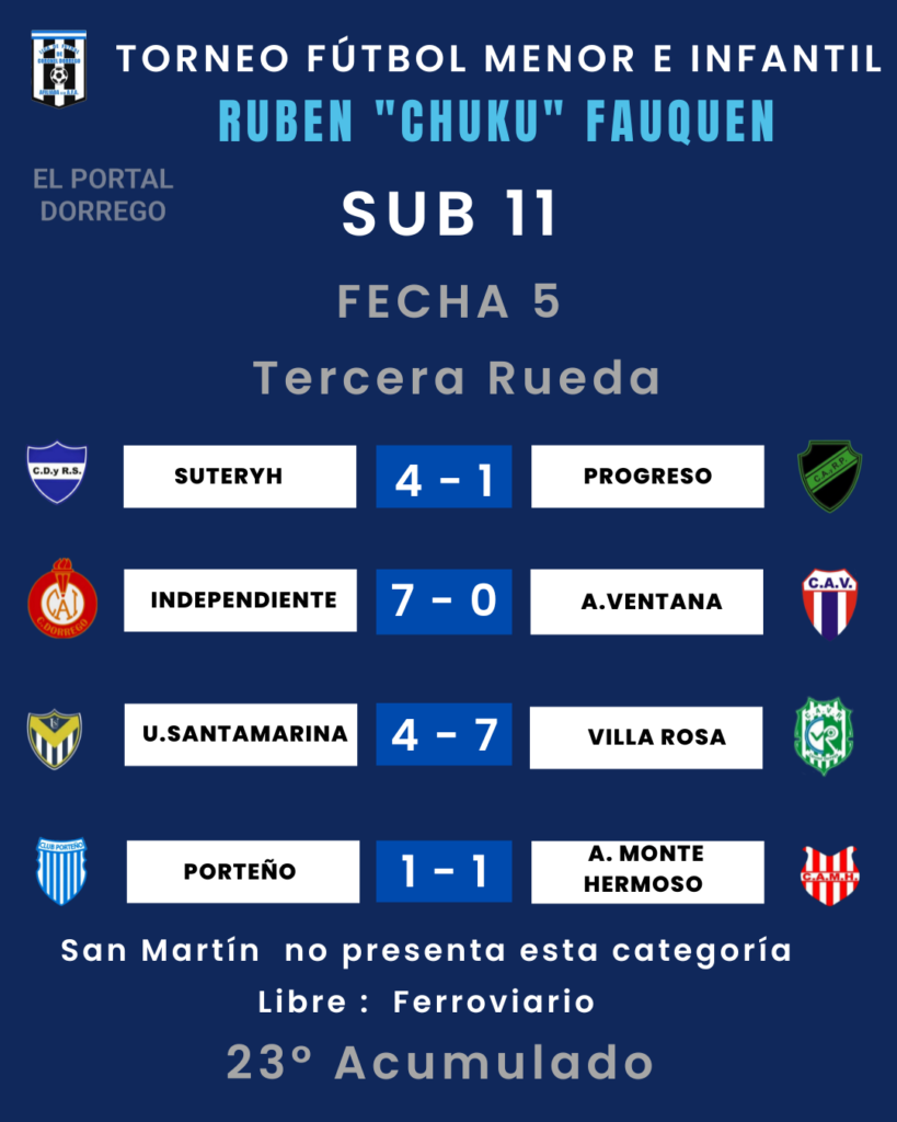 Se jugó la fecha 5 de la tercera rueda y 23 del Acumulado del torneo de fútbol menor e infantil Ruben «Chuku’ Fauquen
