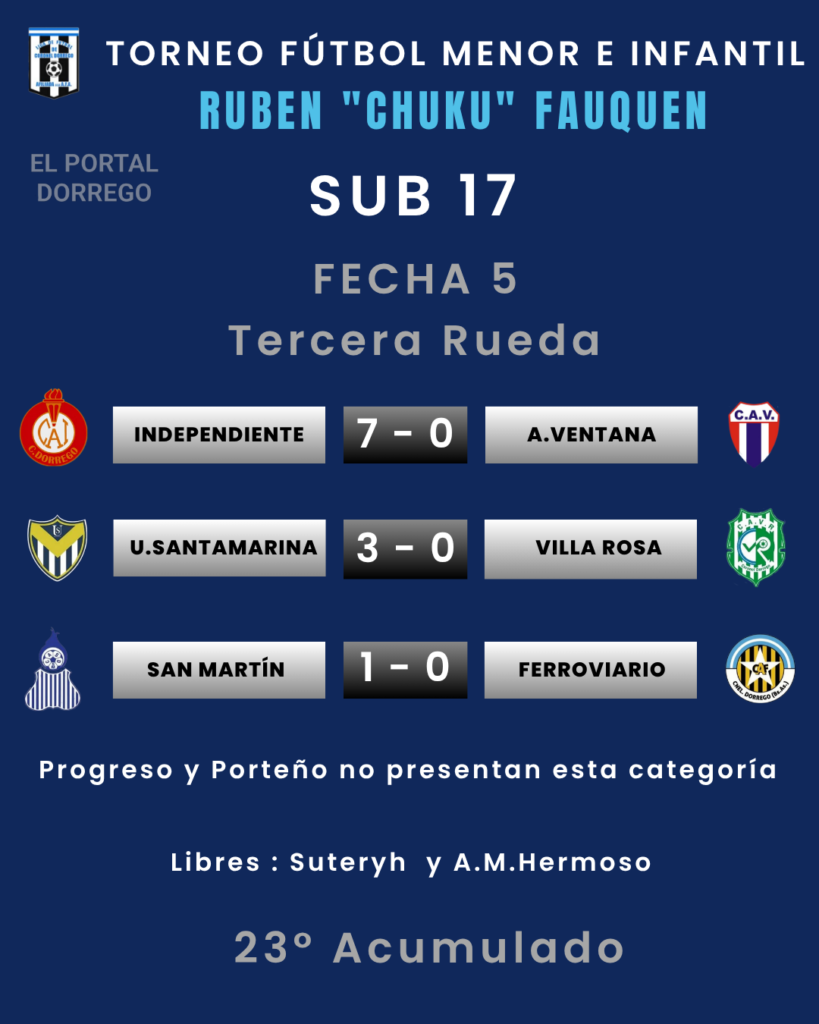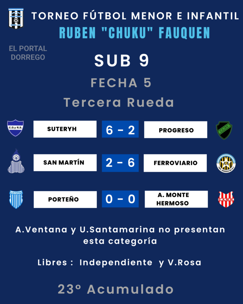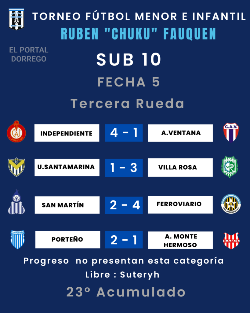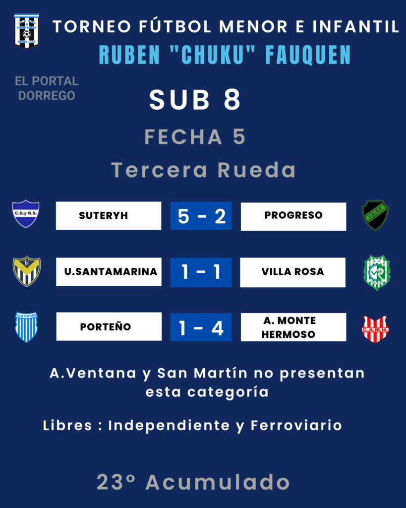 | Villa Rosa vs San Martín Ferroviario vs Porteño A.M.Hermoso vs Suteryh Progreso vs Independiente A.Ventana vs Unión Santamarina |