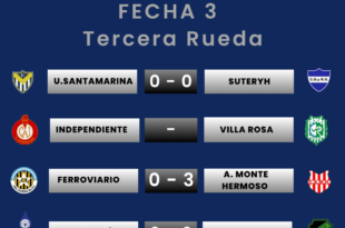 Se jugó la fecha 3 de la tercera rueda y 21 del Acumulado del torneo de fútbol menor e infantil Ruben «Chuku’ Fauquen FÚTBOL MENOR SUB 13U.Santamarina : ( 0 ) Suteryh : ( 0 )Independiente : ( 3 ) : Federico Fidelibus ( 2 ) -.Camilo Schill Villa Rosa : ( …