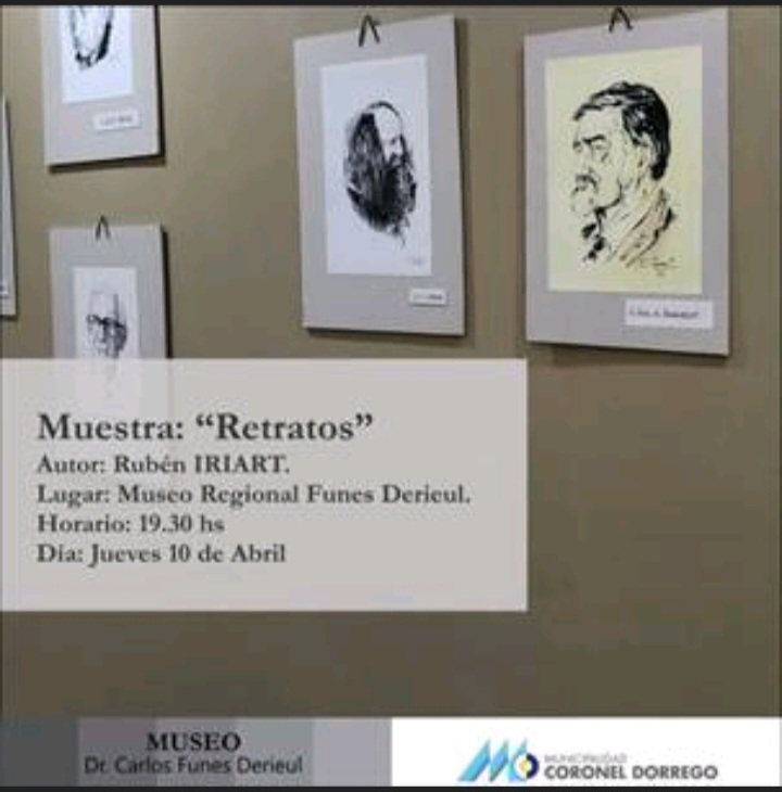 El venidero jueves 10 se abrirá una muestra titulada «Retratos» del artista Rubén Iriart; será a las 19:30 en el Museo Regional doctor Carlos Funes Derieul.