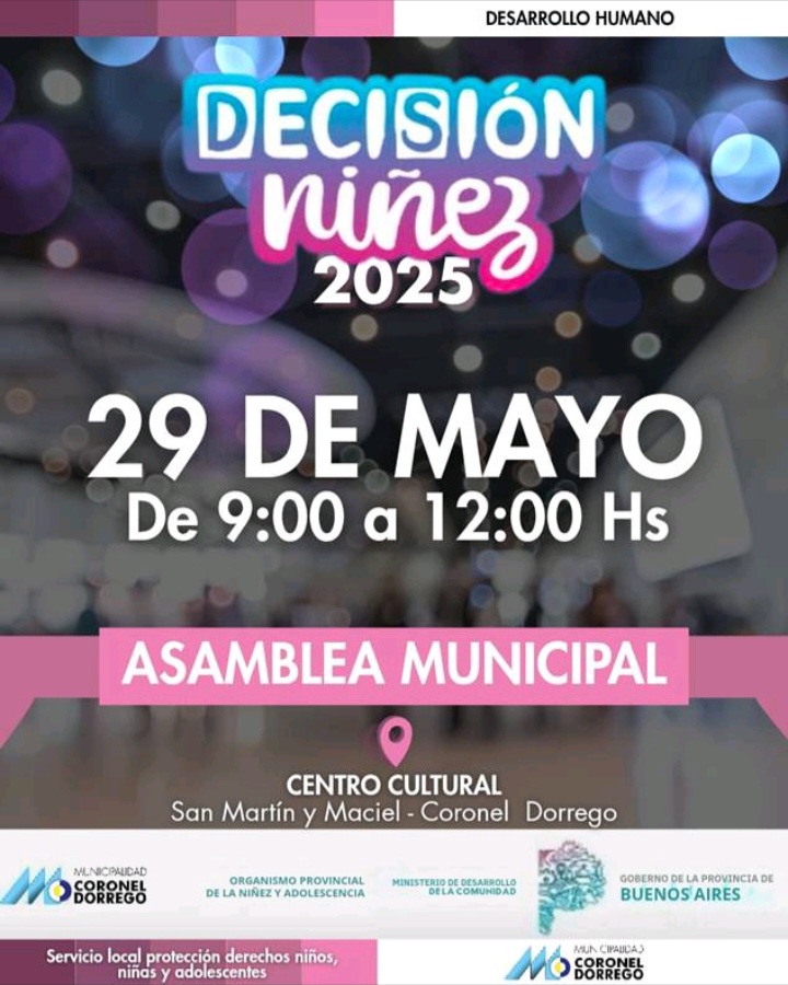 El Servicio Local de Protección de Derechos de Niños, Niñas y Adolescentes dependiente de la Dirección de Desarrollo Humano informó que mañana jueves 29 a las 10, en el Centro Cultural de nuestra ciudad, se realizará la etapa local de la 5ta edición del Programa Provincial Decisión Niñez. En el mismo, se presentarán seis proyectos, representando a distintas Instituciones Educativas de nuestro distrito y a Programas de nuestra comunidad, en dos categorías (8-12 y 13-17 años). Es de destacar, que la elección de los proyectos que pasen a la etapa Regional, la realizarán los propios participantes, basándose en el consenso para esa elección. En ediciones anteriores del Programa, distintos proyectos presentados en nuestro distrito resultaron ganadores del mismo.
