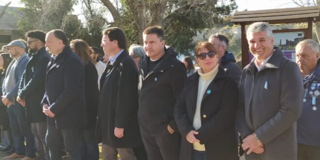 El intendente Juan Chalde y su par de Tres Arroyos, Pablo Garate presidieron en las primeras horas de la tarde de este viernes 20 un muy bonito Acto por el Día de la Bandera en el Paraje Puente Viejo frente al Río Quequén Salado. Luego de la entrada de una gran bandera formada por dos similares que convergen desde ambas márgenes del río, ingresó una imponente caravana hacia el predio donde se desarrolló la conmemoración.
