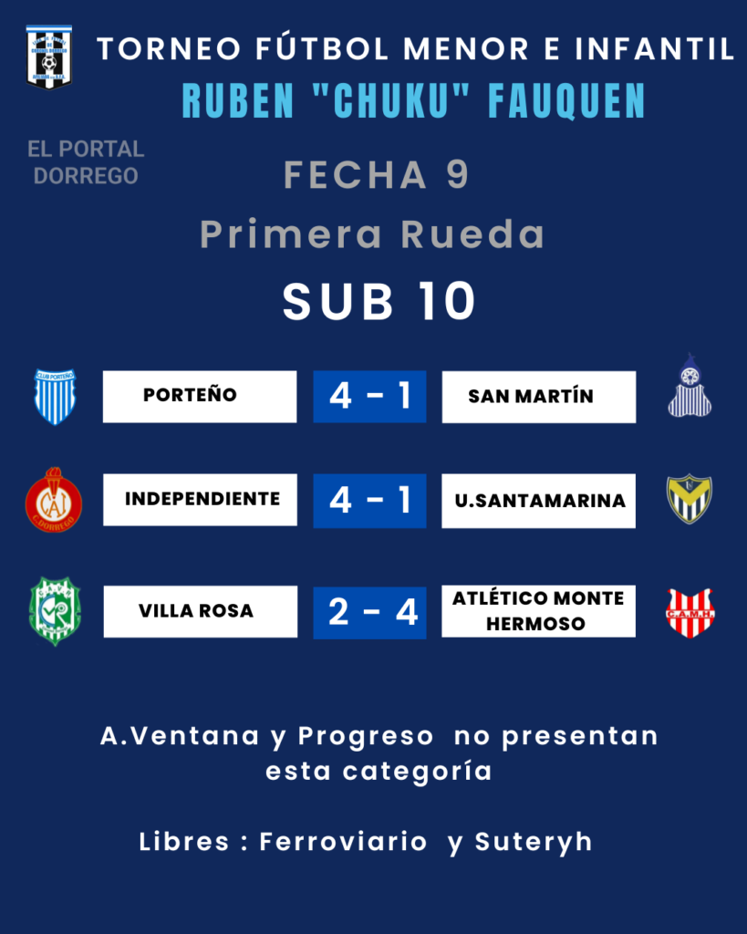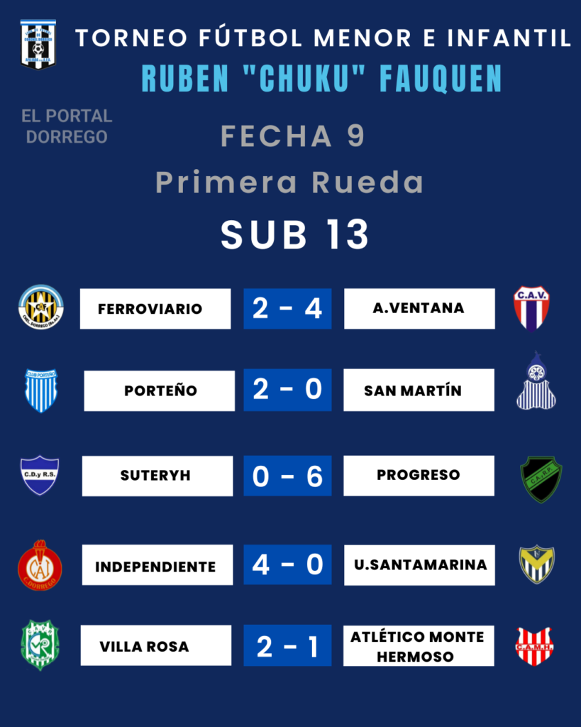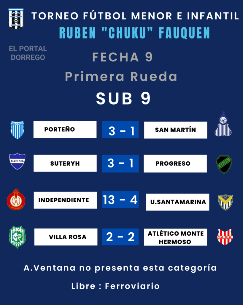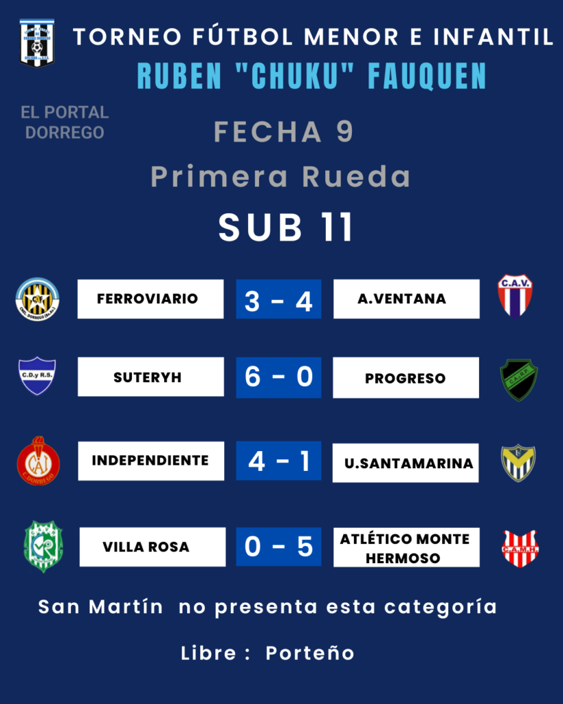 Se jugó la fecha 9 , última de la primer rueda del torneo de fútbol menor e infantil Ruben «Chuku’ Fauquen
