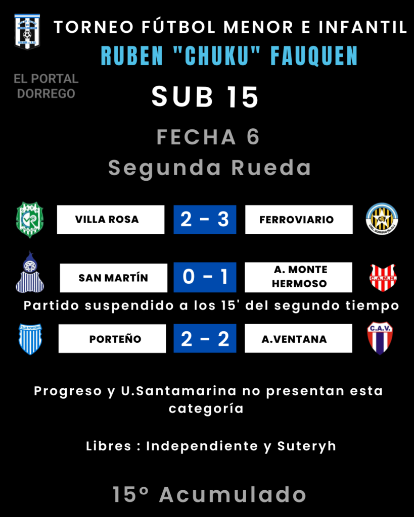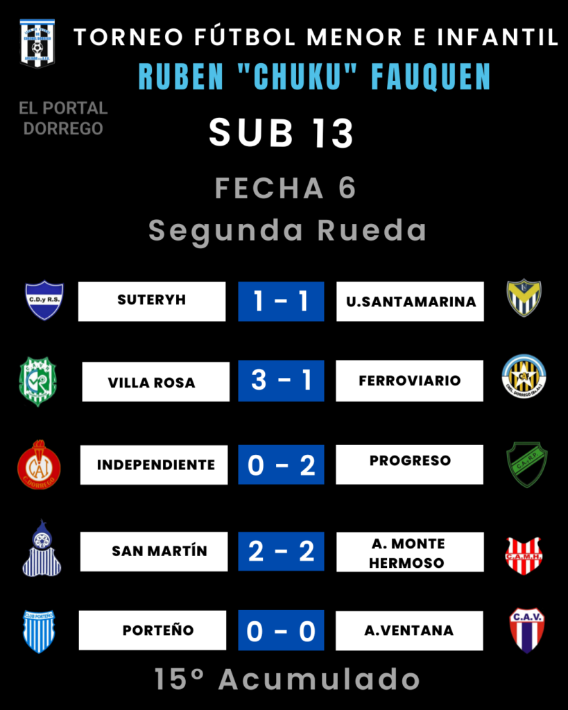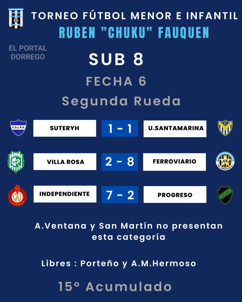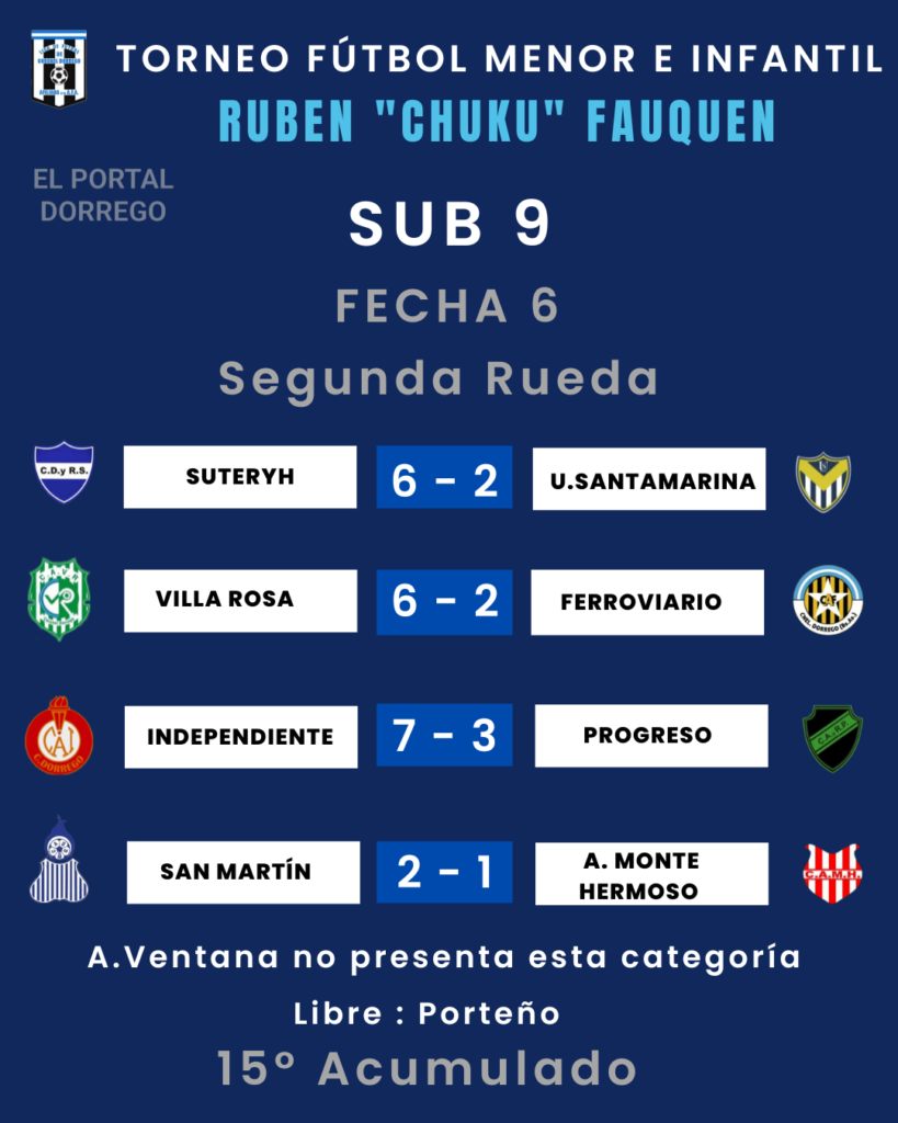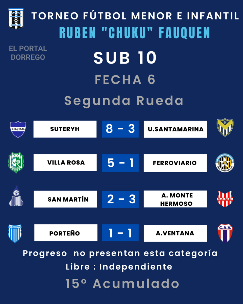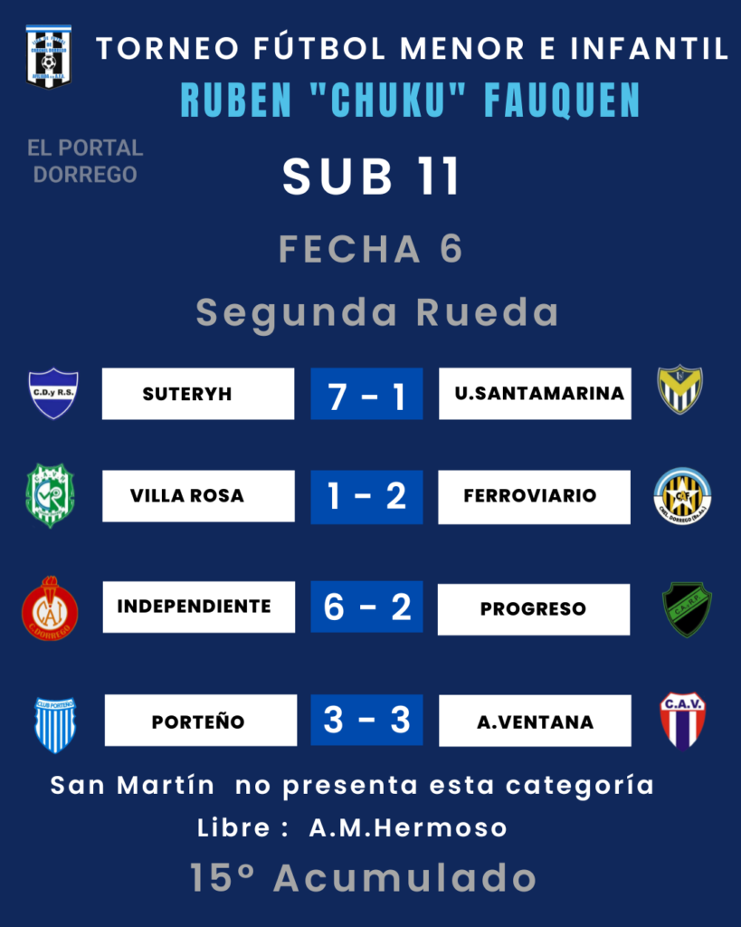 Se jugó la fecha 6 de la segunda rueda y 15 del Acumulado del torneo de fútbol menor e infantil Ruben «Chuku’ Fauquen