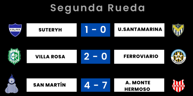 | Porteño 33 Pts Suteryh 26 Pts. Independiente 23 Pts. Villa Rosa 20 Pts San Martín 18 Pts. A.M.Hermoso 18 Pts. A.Ventana. 10 Pts. ( No jugó la 1° Rueda) U.Santamarina 1 Pt Ferroviario 1 Pt. |