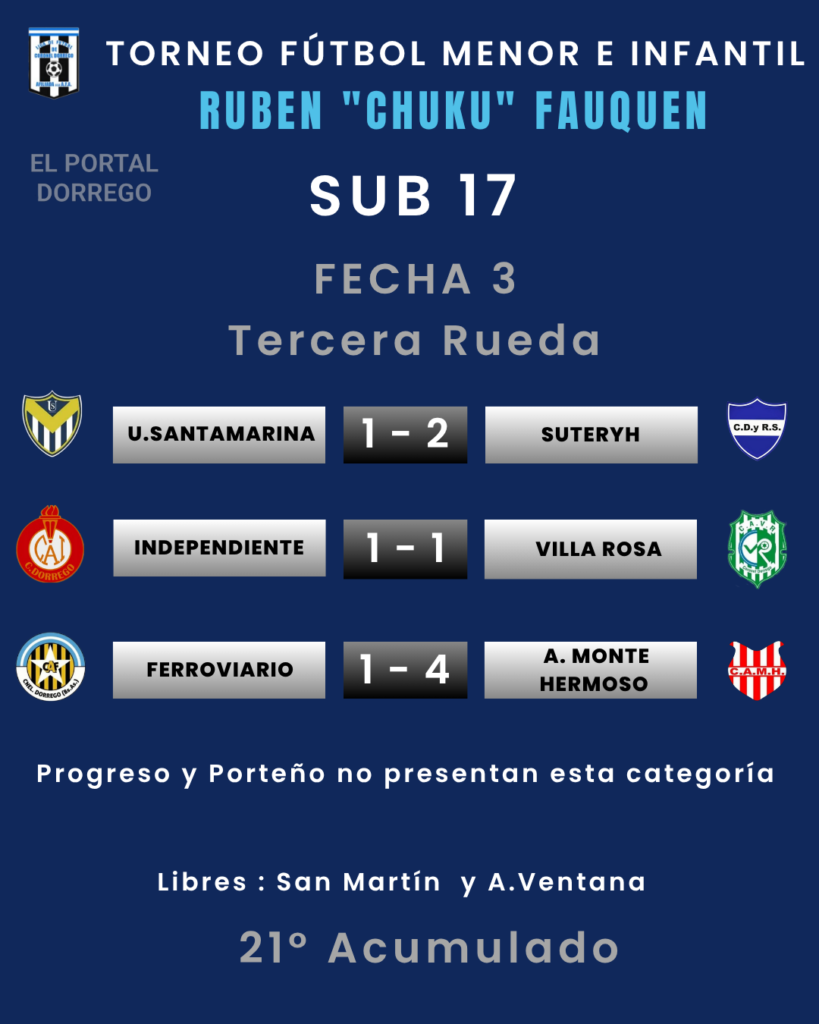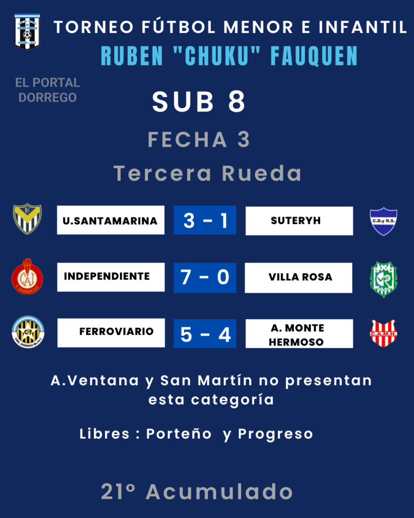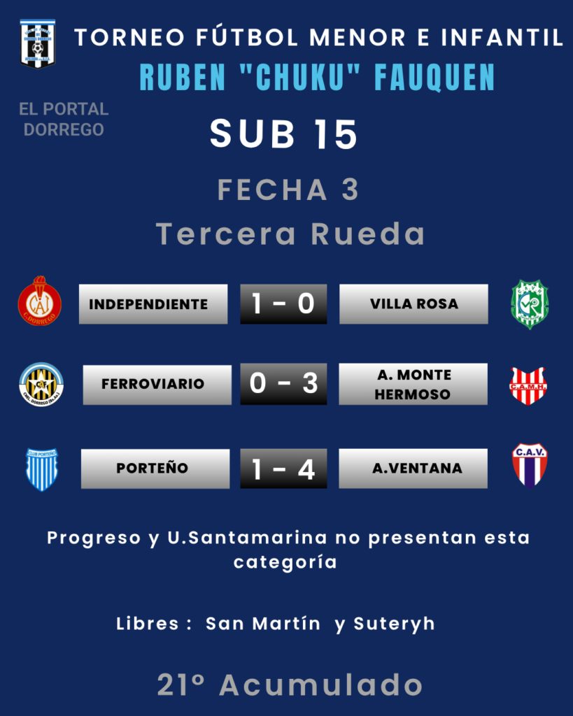 Se jugó la fecha 3 de la tercera rueda y 21 del Acumulado del torneo de fútbol menor e infantil Ruben «Chuku’ Fauquen