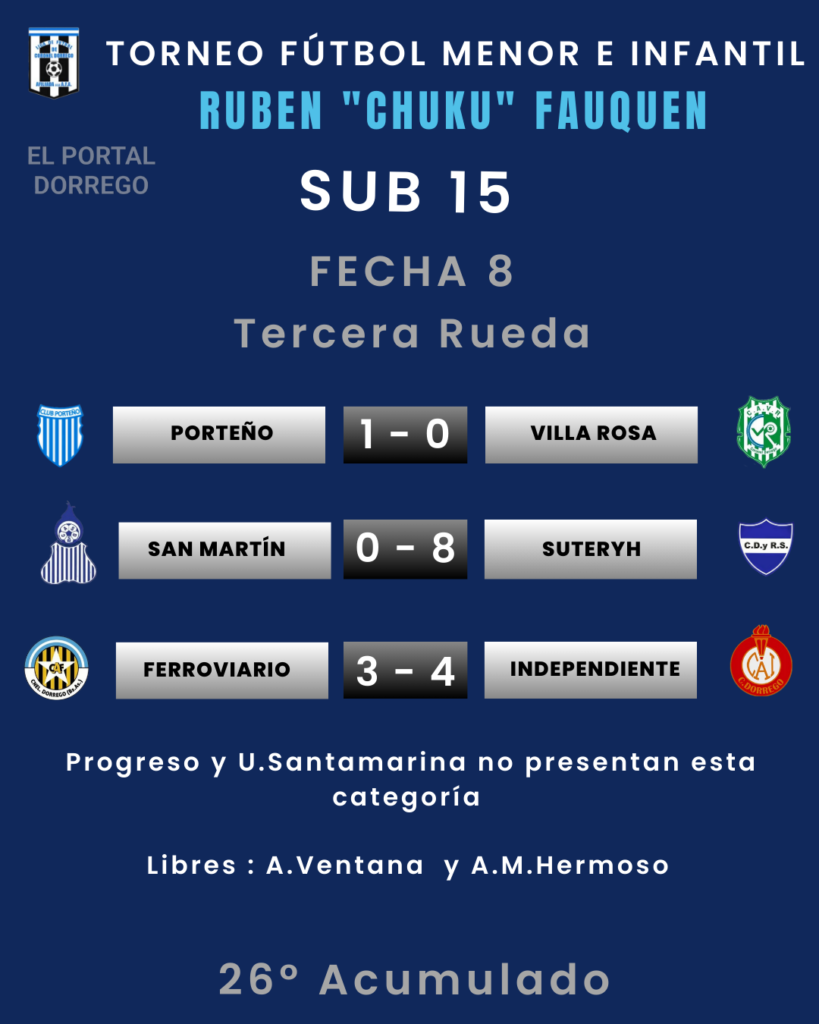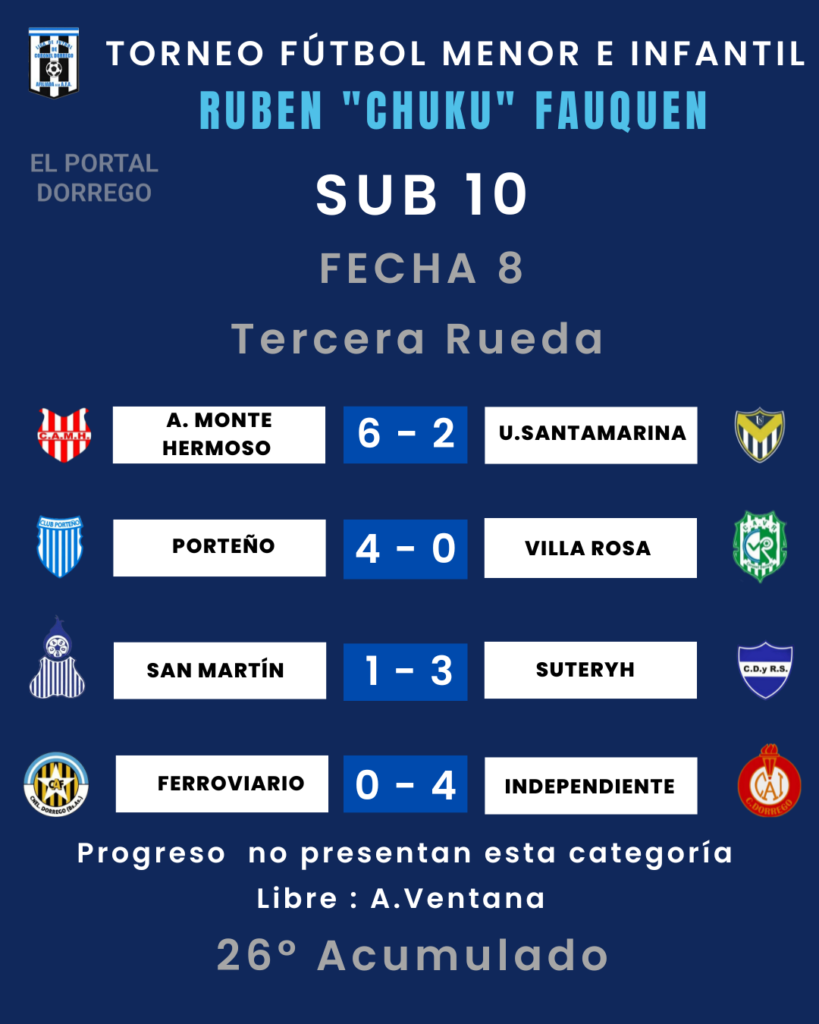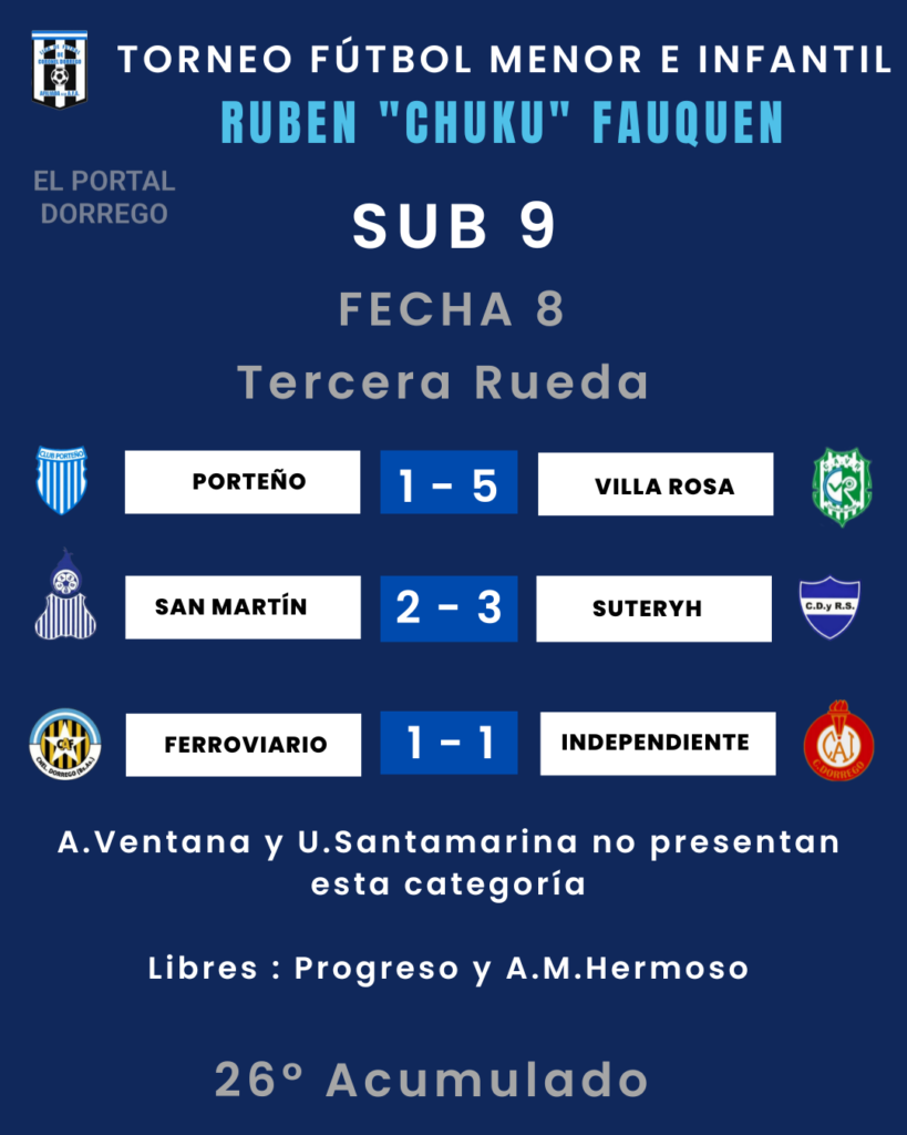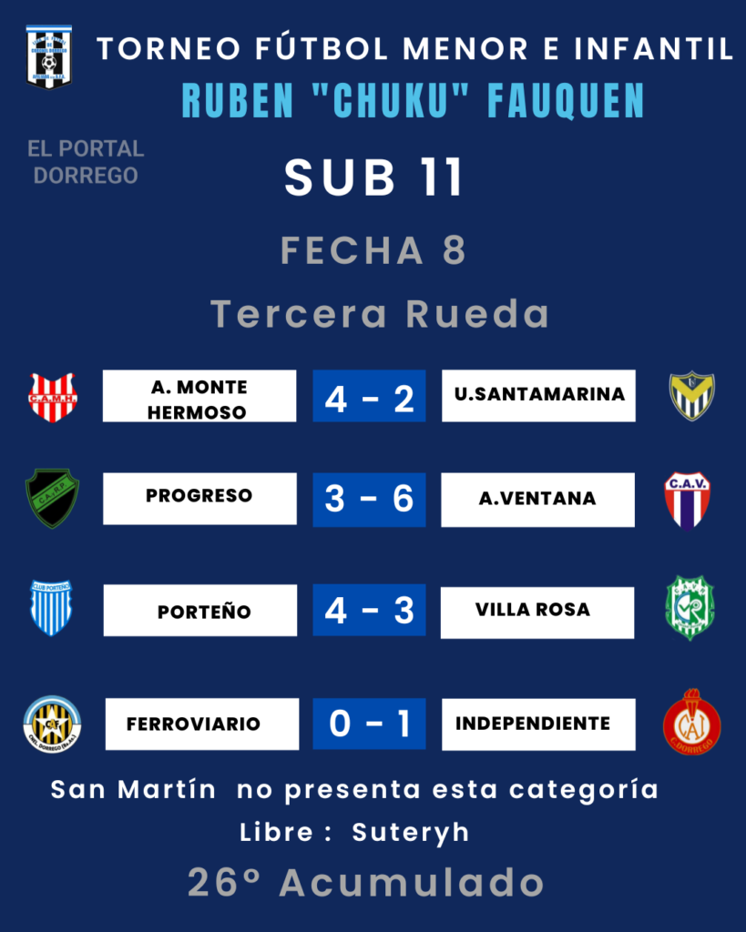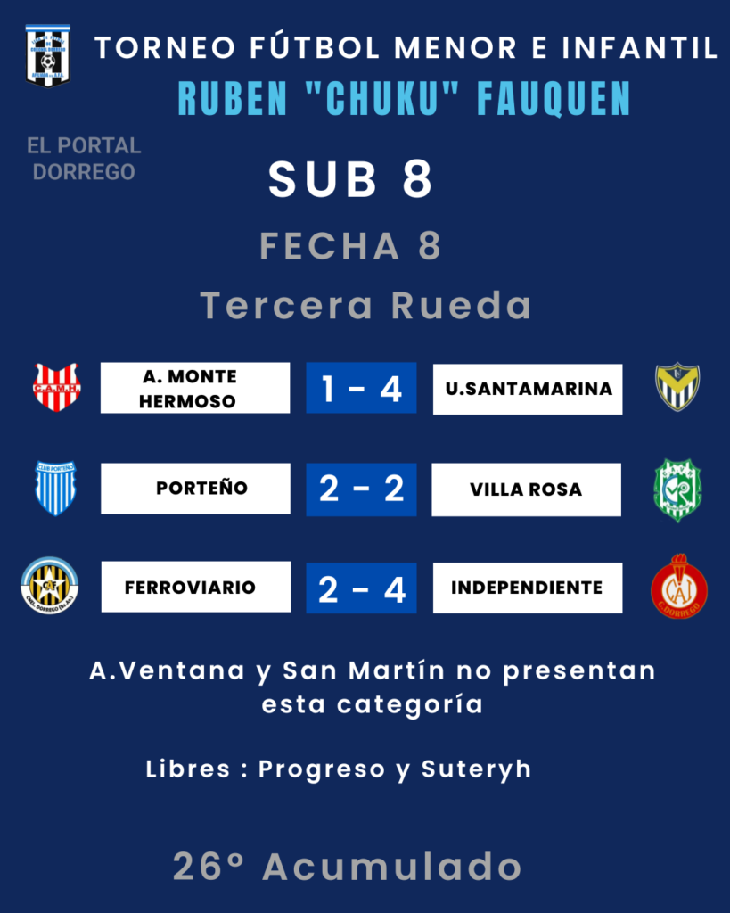 Se jugó la fecha 8 de la tercera rueda y 26 del Acumulado del torneo de fútbol menor e infantil Ruben «Chuku’ Fauquen
