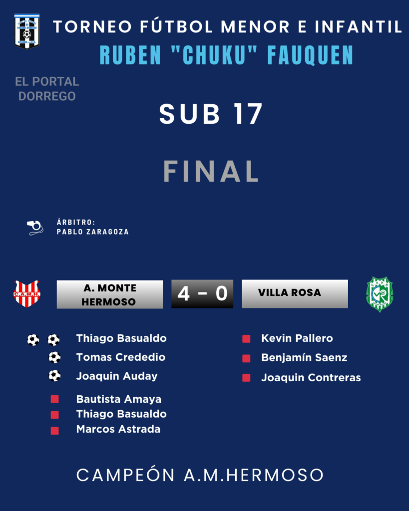 Fútbol menorSub 17A.M.Hermoso se consagró campeón de la categoría, al ganar la final ante V.Rosa por 4 a 0